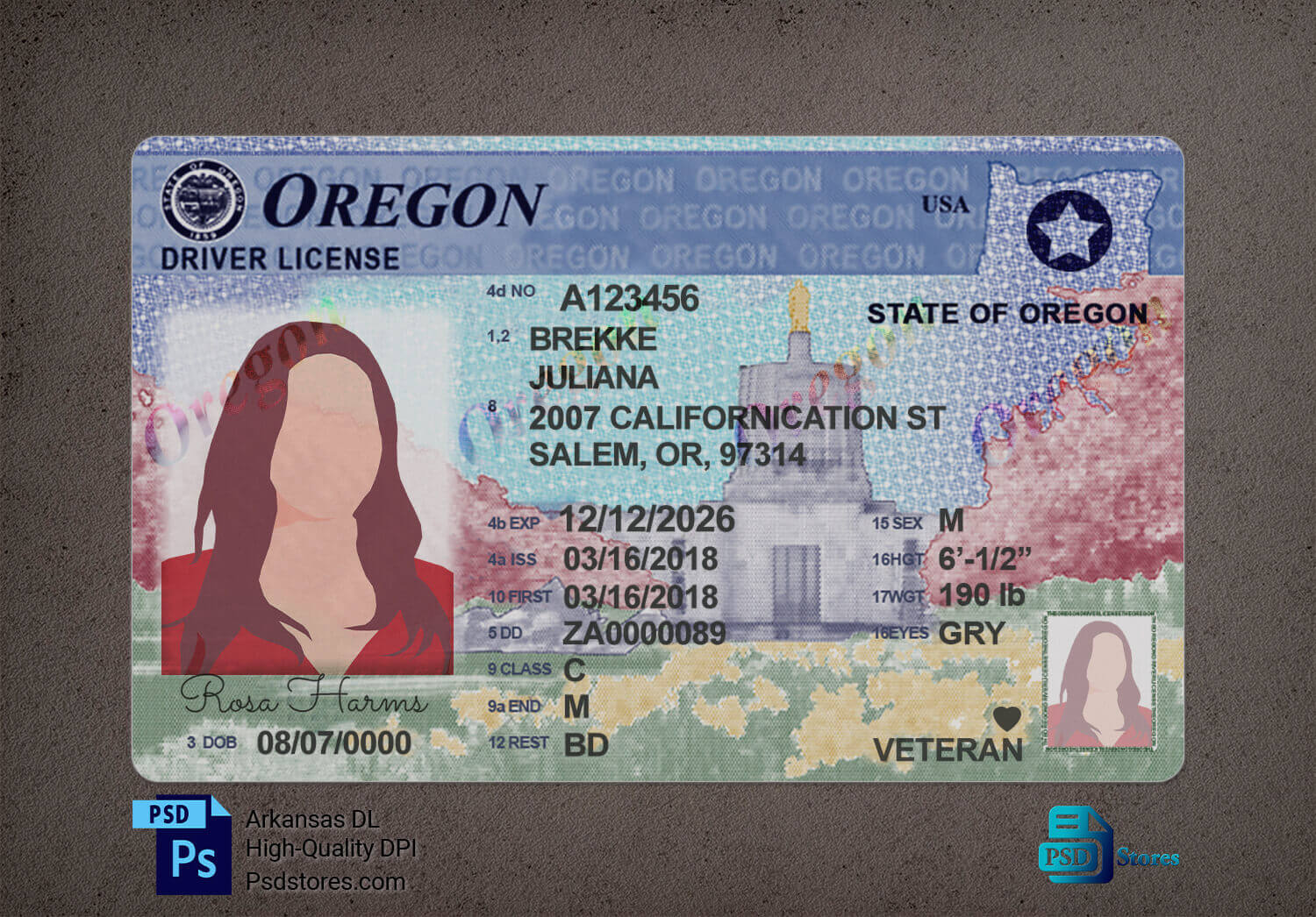 ☑ Oregon Driver License Premium Template